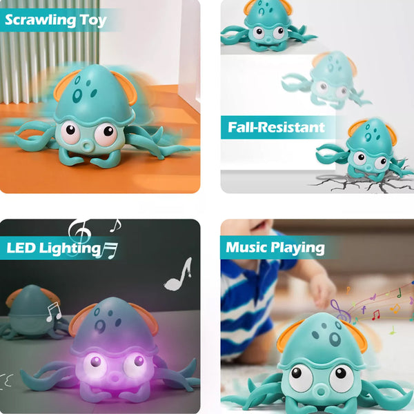 Electric Crawling Octopus Toy LED Light Up Musical Walking Toy for Kids Green