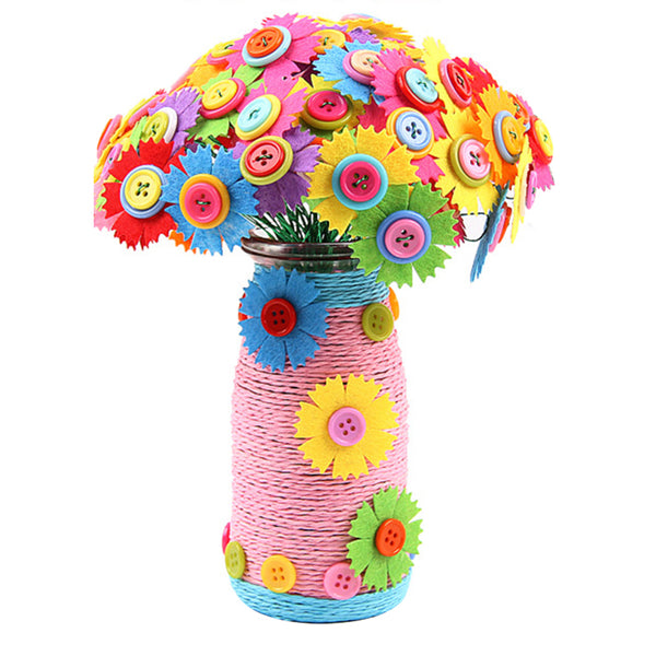 - Large amount of felt flowers,colorful buttons and strings to craft your own master piece of flower bouquet and vase