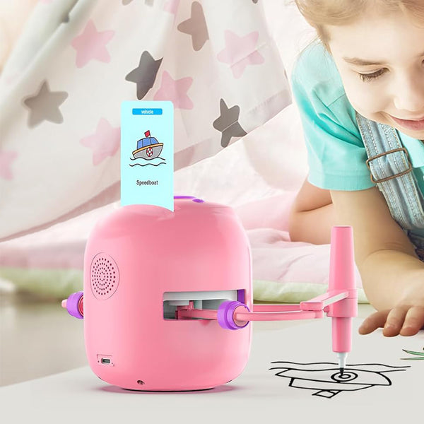 Interactive Educational Drawing Robot with 100 Cards Voice Interaction Learning Toy Pink