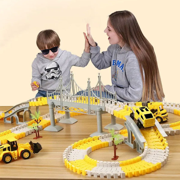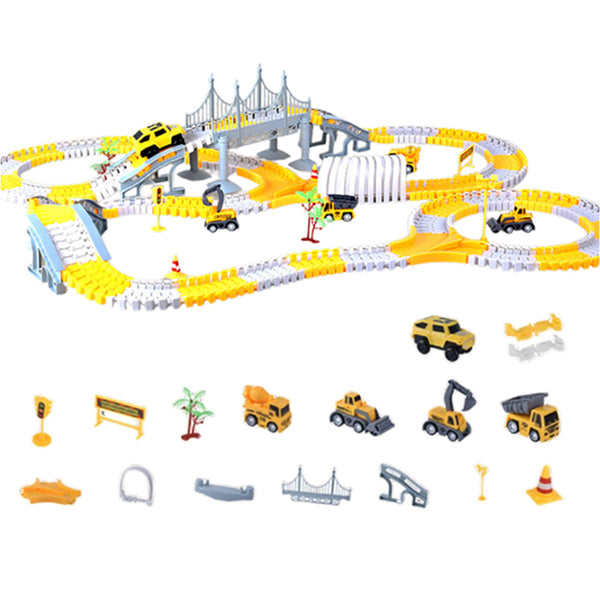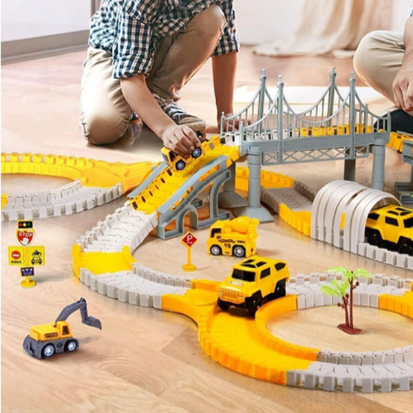 This construction race track set allows kids to easily assemble and customize their track layouts for exciting and imaginative racing adventures.