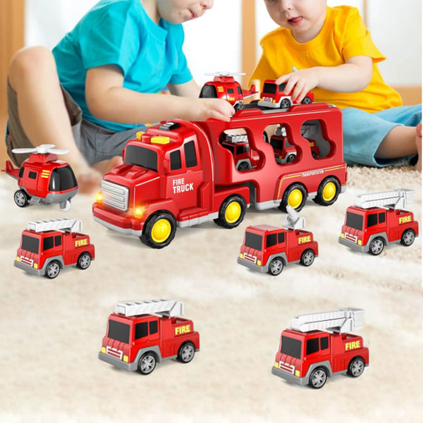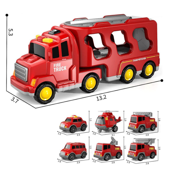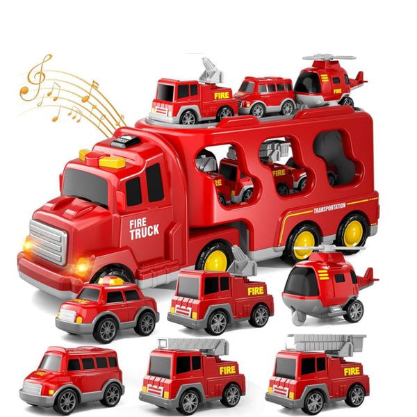 Kids LED Toy Cars Set Music Sound Truck Car with 6 Mini Cars Christmas Birthday Surprise Red