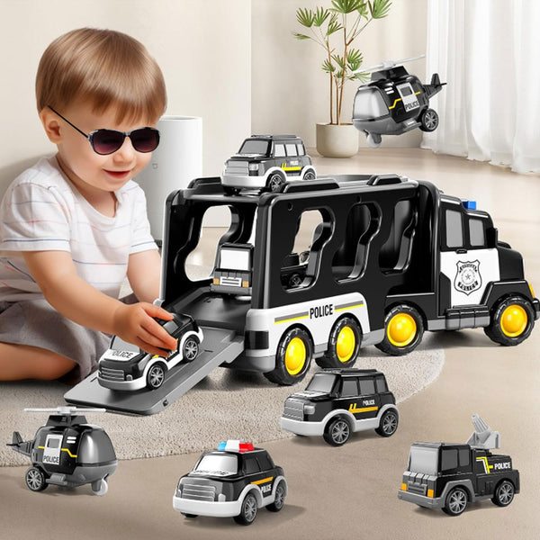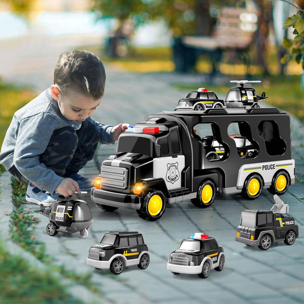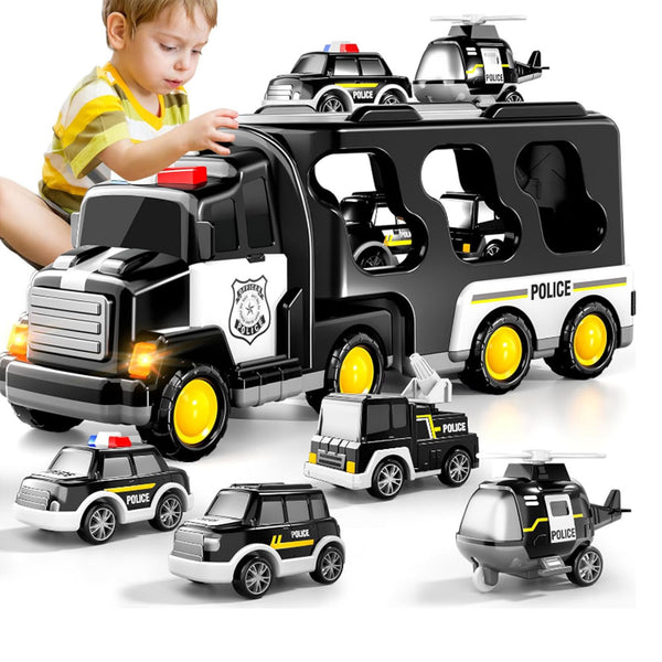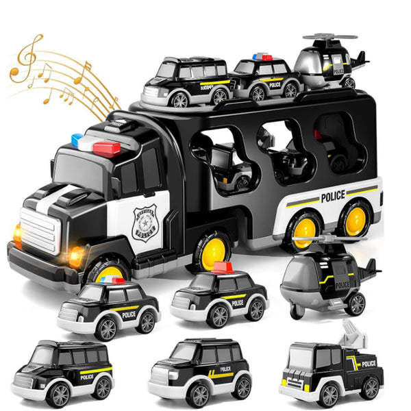 Kids LED Toy Cars Set Music Sound Truck Car with 6 Mini Cars Christmas Birthday Surprise Black