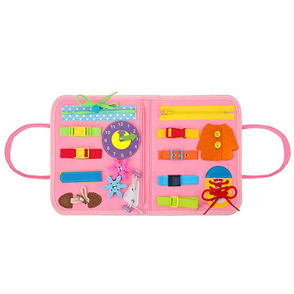 Features 19 different varieties of Montessori toddler activities, including zippers, shoelaces, buttons, belt buckles, gears, shapes, alphabets, clocks and number, etc. A great toy for children to explore by themselves! It is also an ideal parent-child interactive toy!