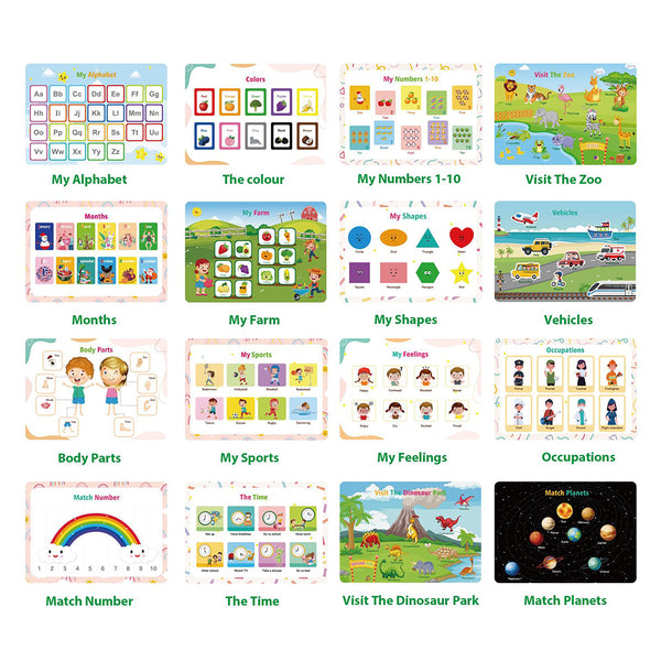This busy book for kids features 16 themed pages and 6 painting themed pages, including letters, numbers, shapes, animals, transportation and etc, covers wide ranges of basic elements of real life.