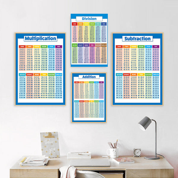 Designed to help young learners master addition, subtraction, multiplication, and division from 1 to 12, these posters blend learning with fun.