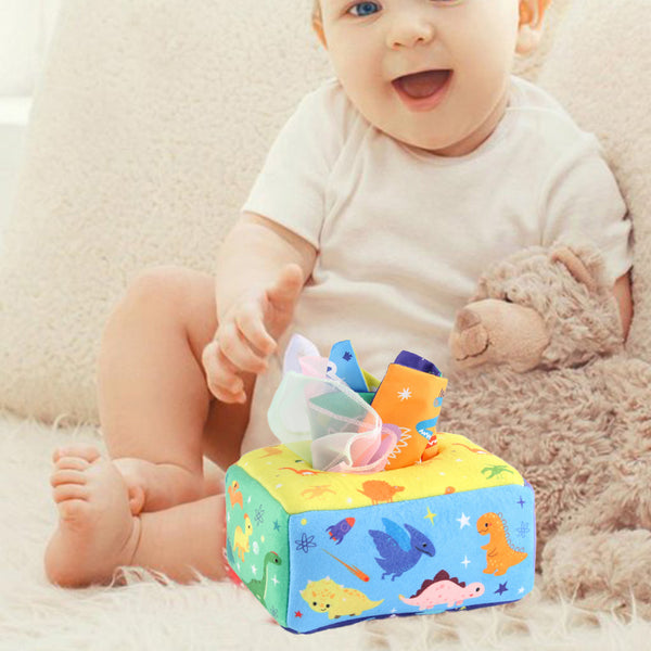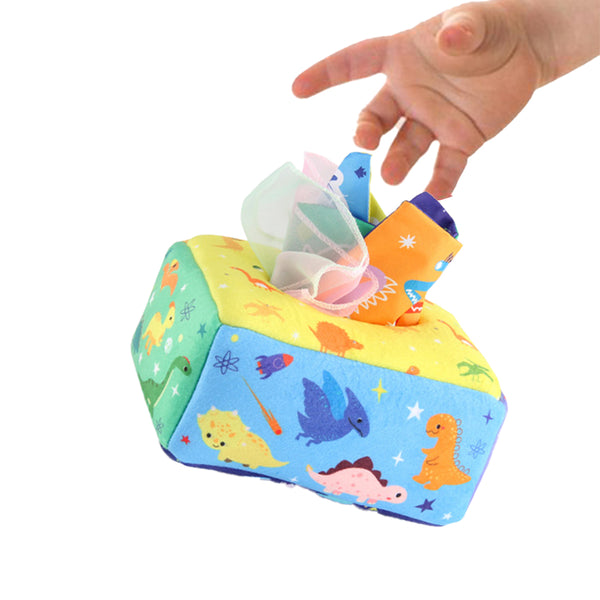 This is an interesting tissue paper replacement toy, baby can easily take out the square gauze and square cloth, which can make your baby stop playing with real tissue.