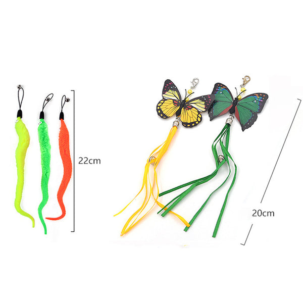 - Customizable Playtime: Easily switch between different toy heads like butterflies, caterpillars, or feathers, offering a variety of textures and shapes to keep your cat entertained.
