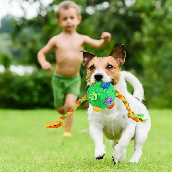 - Uniquely designed Snuffle ball allows your dogs to discover hidden snacks or small toys within the ball.