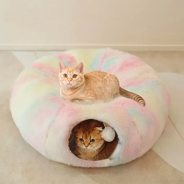 Designed for indoor cats, this cat tunnel bed is made of high quality plush to keep them warm in winter so your cat can play and sleep in the cat aisle.