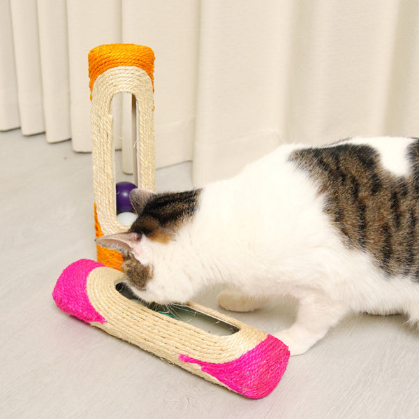 This sisal rolling post cat toy features sound balls, designed to engage and entertain your cat while satisfying its scratching instinct.