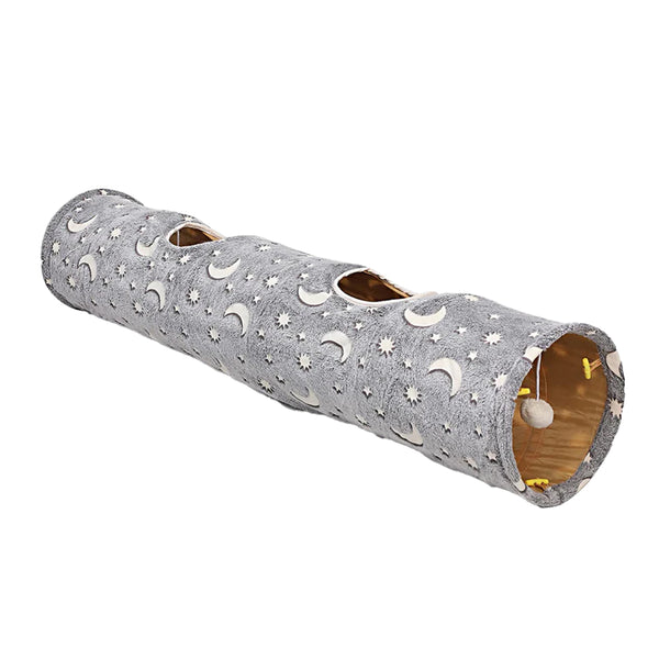 Pet Cat Tunnel Toy with Plush Ball Collapsible Self-Luminous Photoluminescence Toy for Small Animals Pets Style 2