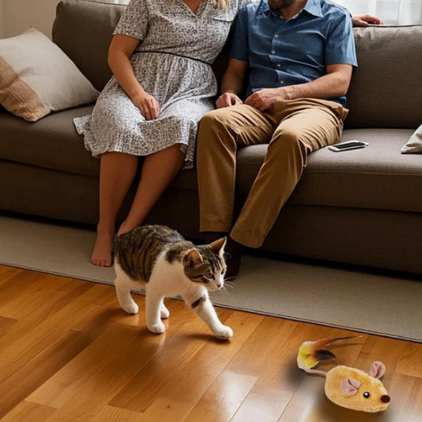 - It's simple to use, just open and place the mouse toy on a flat floor and tap it, it will start making sounds and moving.