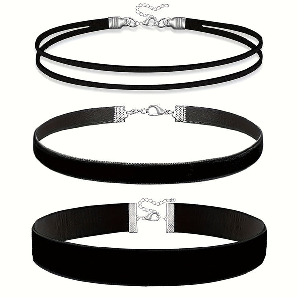 - Stylish 3-Piece Set: Includes 1 layered black necklace and 2 black velveteen necklaces with different widths for elegant layering options.