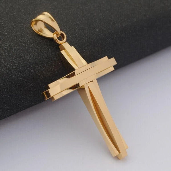 Crucifix Pendant Necklace Titanium Steel Unisex Chain - Gold