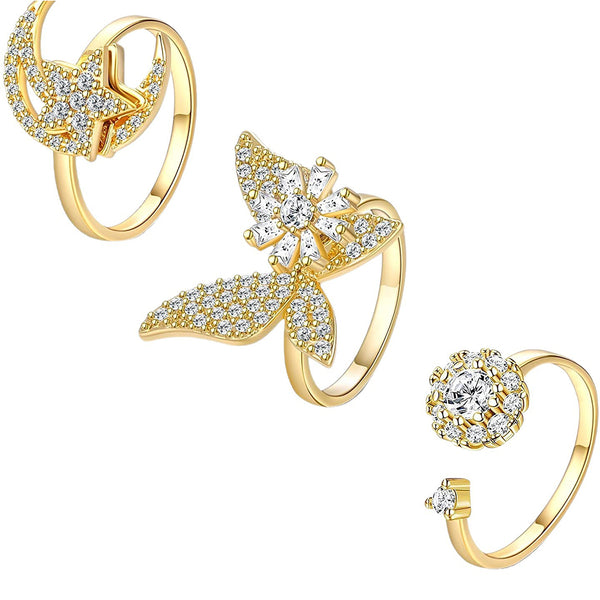 Stylish adjustable zircon spinner ring set featuring smooth rotating bands, designed to combine everyday elegance with a calming tactile experience.