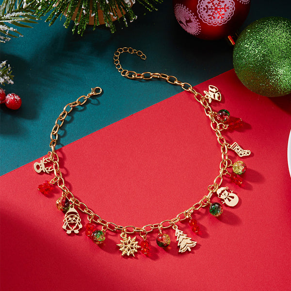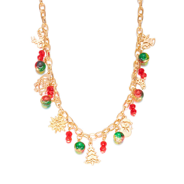 The stunning necklace features a delightful mix of classic Christmas symbols, which is a perfect, festive statement piece that captures all the joy of the season in one wearable accessory.