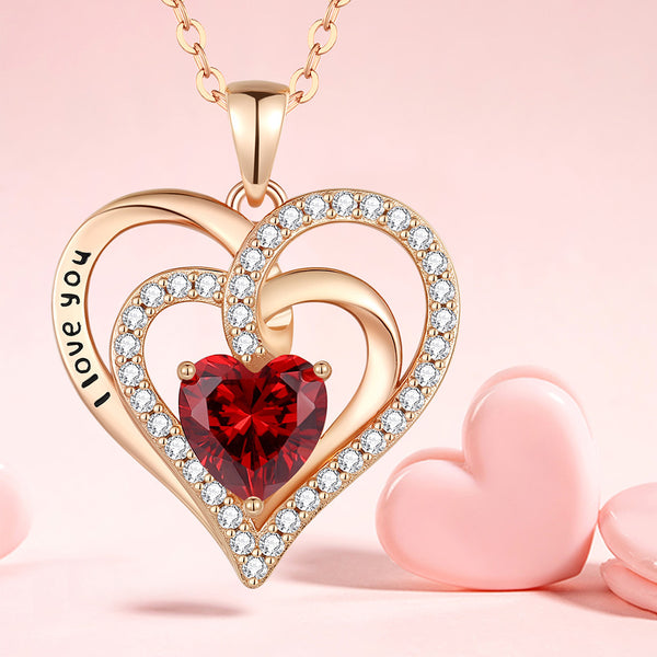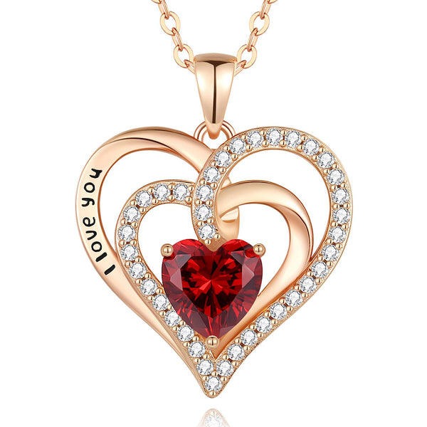 Elegant double layer heart pendant necklace with rose gold and silver tones and colorful zircon accents. Comes with a rose flower gift box for stylish gifting.