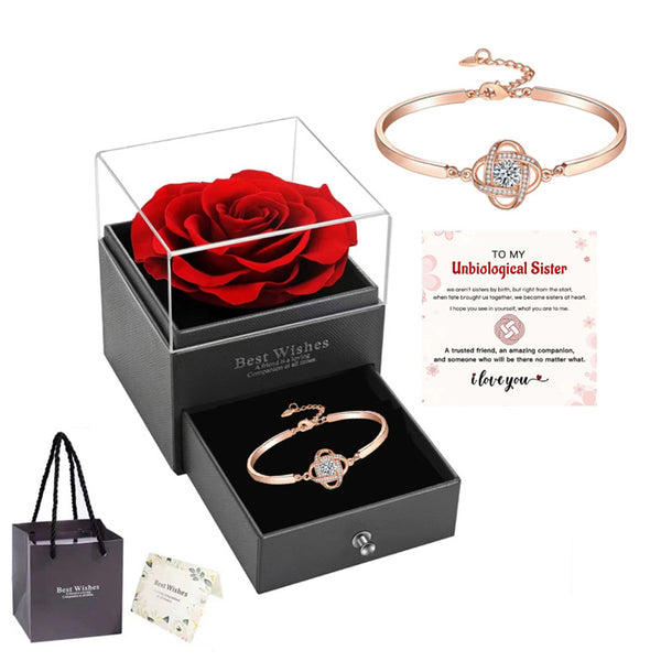 • Gift Packaging: Includes a rose-shaped gift box, card, and gift bag, perfect for special occasions.