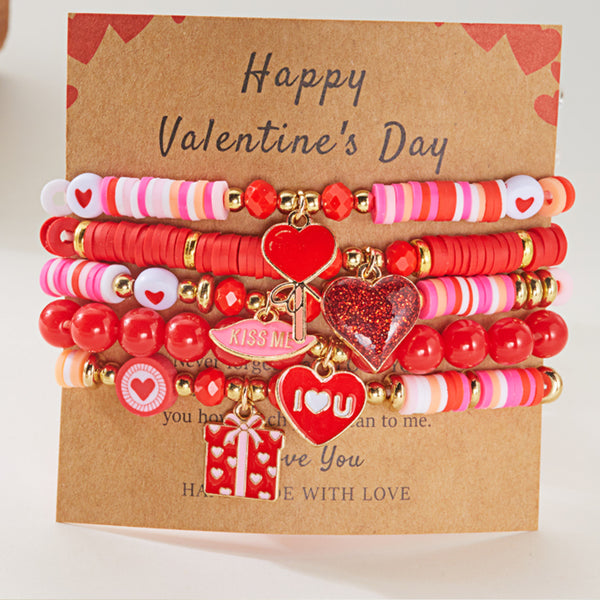 Valentine’s Day Heart Bracelet Set for Women 6-Piece Layered Jewelry Style 3