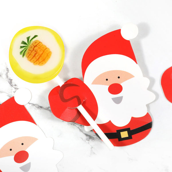 100PCS Christmas Party Lollipop Holders – Santa Claus Candy Paper Card Decorations