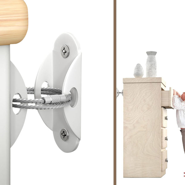 Secure your furniture to prevent tipping accidents and protect your little one and pet with these heavy-duty furniture anchor straps.