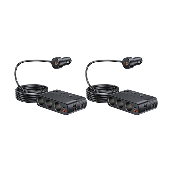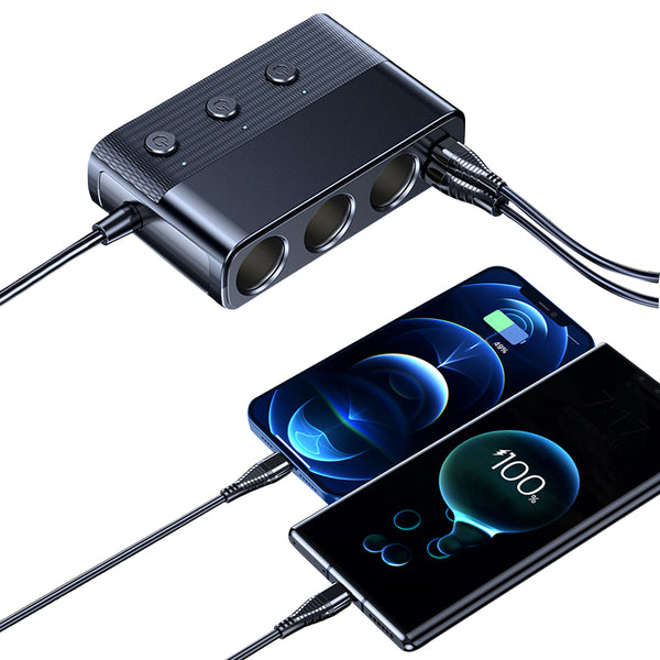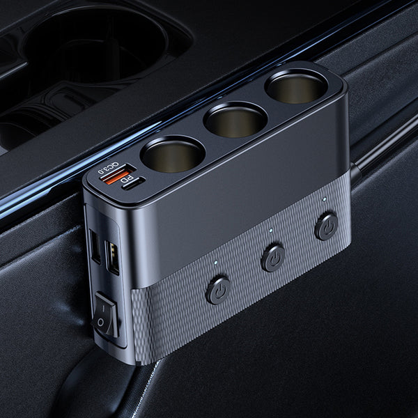 Universal Car Charger adapter with 3-socket cigarette lighter extend more power interface for car devices.