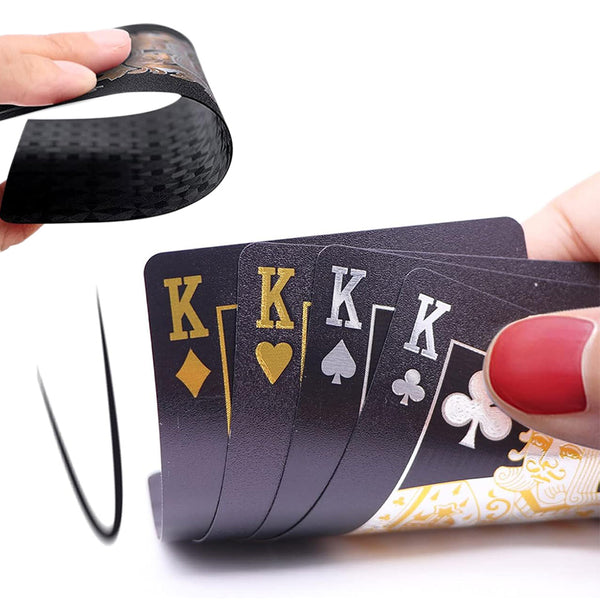 2 Pack Waterproof Playing Cards Set Plastic Deck of Cards Poker Game Set for Party Camping Travel On-the-Go Black
