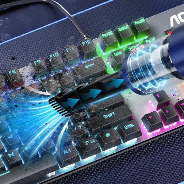 This versatile 4-in-1 handheld air duster and car vacuum cleaner combines blowing, sucking, vacuuming, and inflating functions, making it perfect for various cleaning needs.