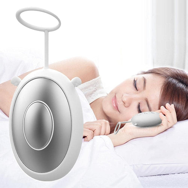 The sleep aid device helps alleviate stress and promote relaxation through gentle vibrations and soothing sounds.