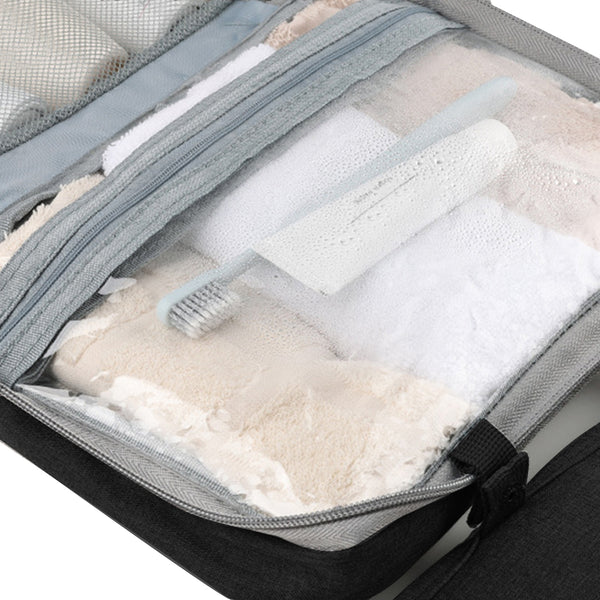 Featuring dry and wet separation, separate compartments design, this large capacity toiletry bag is easy to carry, easy-to-carry, great for overnight staying, a long journey, gym shower and outdoor activities
