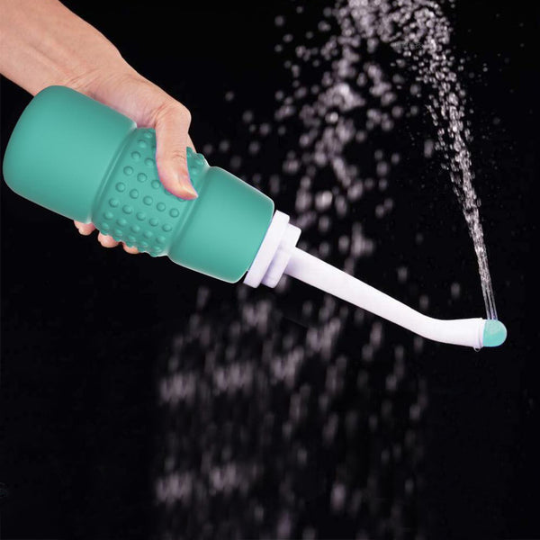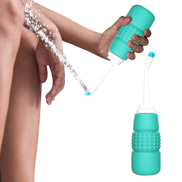 Designed for private part cleansing, this portable bidet bottle features large capacity and 2 different nozzle.