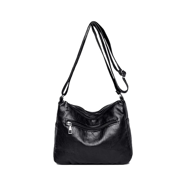 Women Multi Pocket Crossbody Bag Ladies Shoulder Bag PU Leather Mommy Bag Black